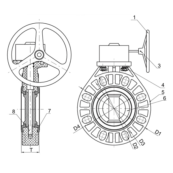 PVDF D371X-10F Worm-Gear Butterfly Valve DN40-1000 1-1/2"-30" ANSI Standard