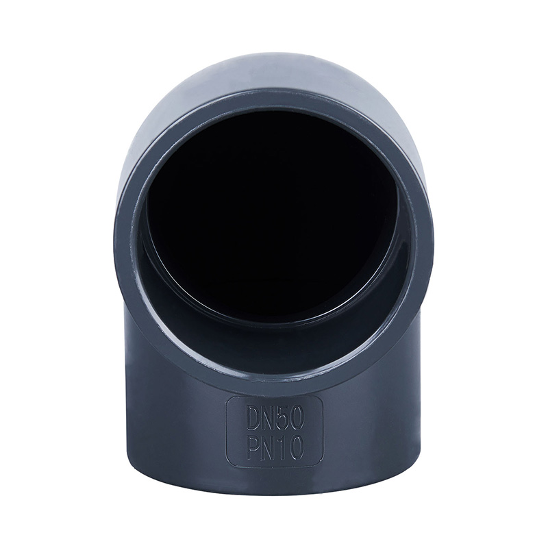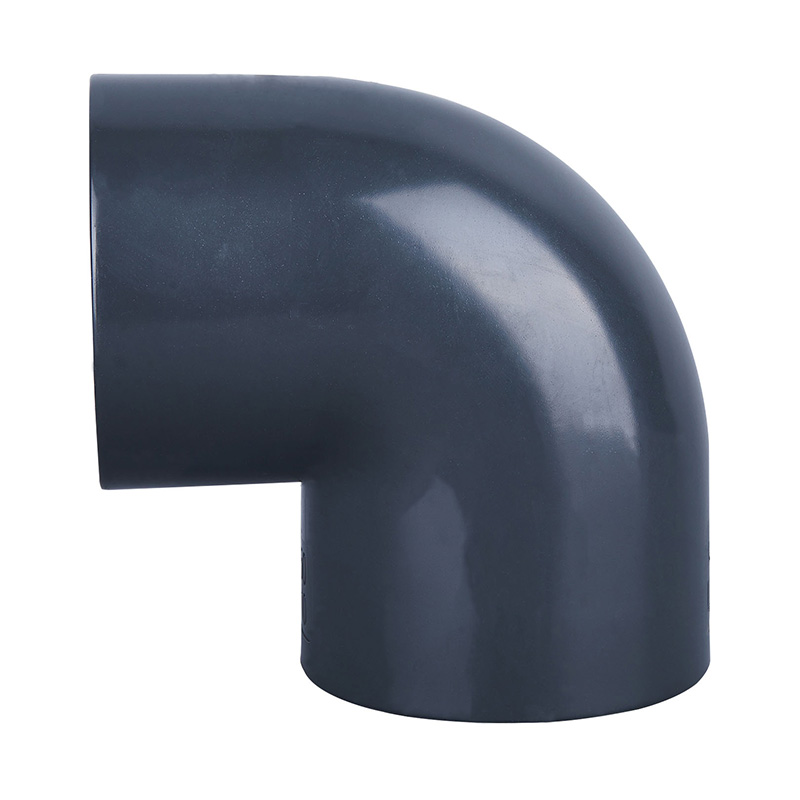 Vysoce kvalitní tmavě šedé PVC-U koleno 90°, rovné, DN15-DN600, pracovní tlak 1,0-1,6 MPa pro chemický a vodárenský průmysl, plastové potrubní fitinky, standard ANSI SCH80